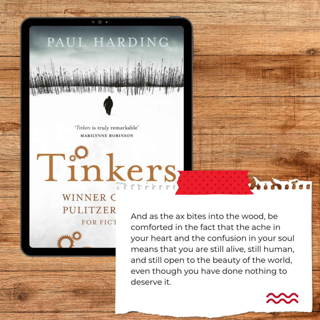 Have you ever had one of those books that you just couldn’t put down? That’s what I experienced when I read Tinkers by Paul Harding. This novel follows the life and death of George Washington Crosby, a New England clock repairman, as he reflects on his life and relationships as he nears death in a hospital bed.