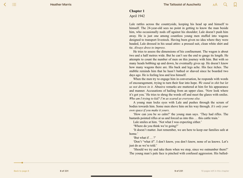 Heather Morris tells this incredible tale with simplicity and grace. Her decision to write the book as a novel rather than a biography brings the characters to life in a deeply personal way. The writing is vivid yet reserved, never veering into melodrama but still managing to evoke visceral emotion. Morris doesn’t sanitize the narrative; the horrors of the Holocaust are laid bare, but they are not sensationalized. Instead, she trusts the raw power of the story to move and inspire readers.