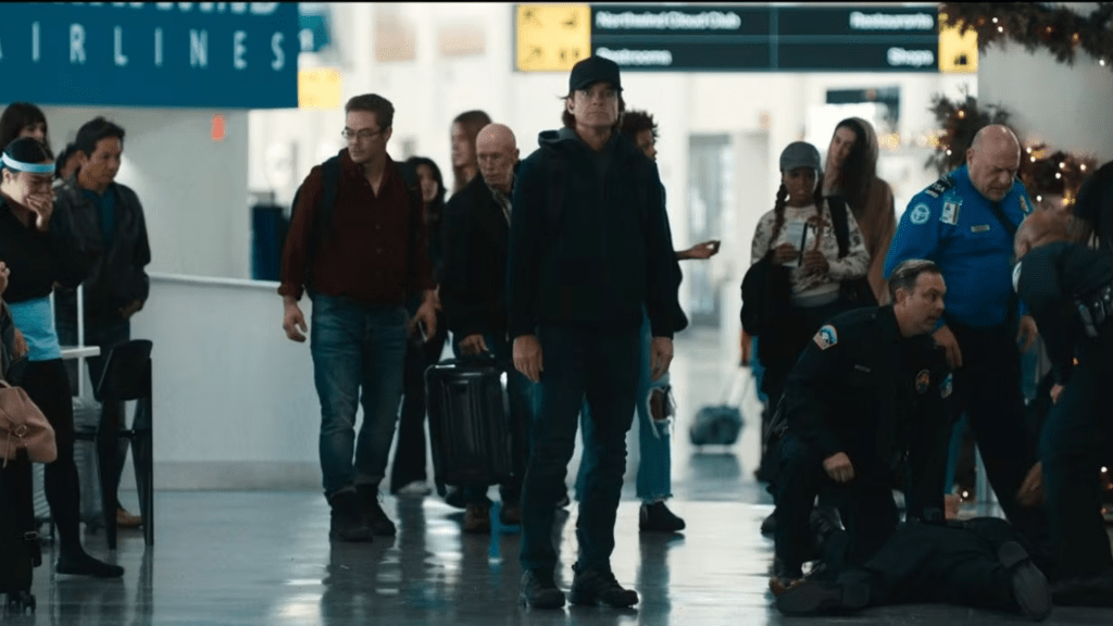 It’s impossible to ignore Carry On’s parallels to Die Hard. Both films are set during the Christmas season, pit an everyday hero against improbable odds, and use a single-location setup to intensify the action. However, where John McClane’s charisma and wisecracks defined Die Hard, Ethan Kopek’s story is more introspective and emotional. The film also leans more into the emotional weight of moral gray areas, while Die Hard was more straightforward in its “good versus evil” stakes.