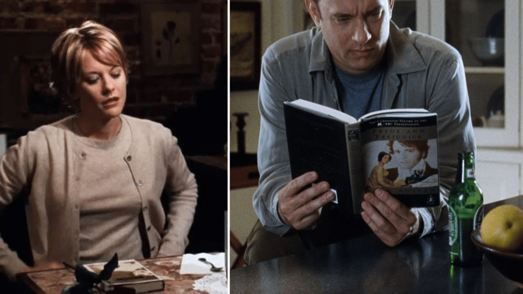 One of the most charming aspects of this film is Kathleen’s heartfelt devotion to Jane Austen’s work. For anyone who holds Pride and Prejudice close to their heart, as I do, it creates an immediate connection. Watching Kathleen cherish the wit and wisdom of Elizabeth Bennet’s incisive observations and the poignant transformation of Mr. Darcy feels like stumbling upon a kindred soul. It’s as if her love for Austen’s masterpiece isn’t just a character trait but an invitation—an unspoken nod to those who have also walked through the pages of that timeless story, finding pieces of themselves within its elegance and depth.