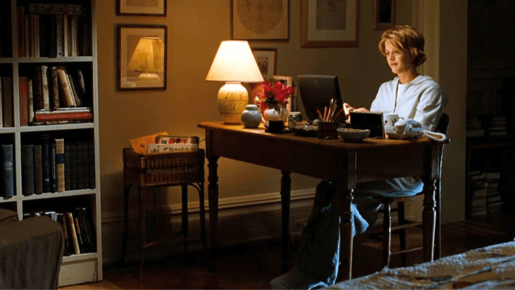 For me, as a writer, watching Kathleen type her emails, surrounded by stacks of books spilling all kinds of stories, hit close to home. The intimate connection to words, the fight to preserve something beautiful, and the undeniable power of a heartfelt sentence—it’s all right there, wrapped up in a charming rom-com package.